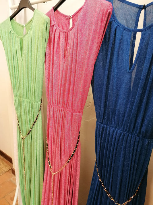 Abito in lurex doppio spacco e shorts
