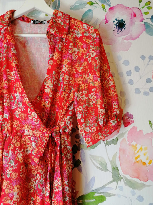 In offertaAbito floreale lungo a coda rosso