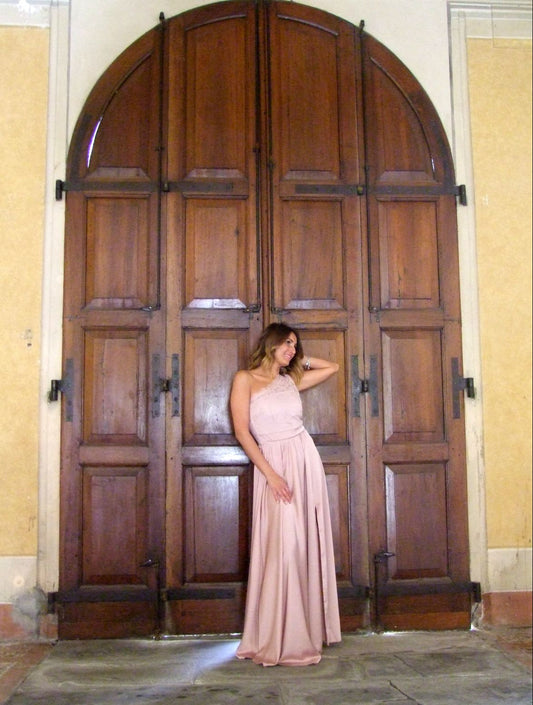Abito monospalla ANNALISA in pizzo e raso