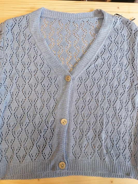 Cardigan 3 bottoni traforato cotone maniche corte