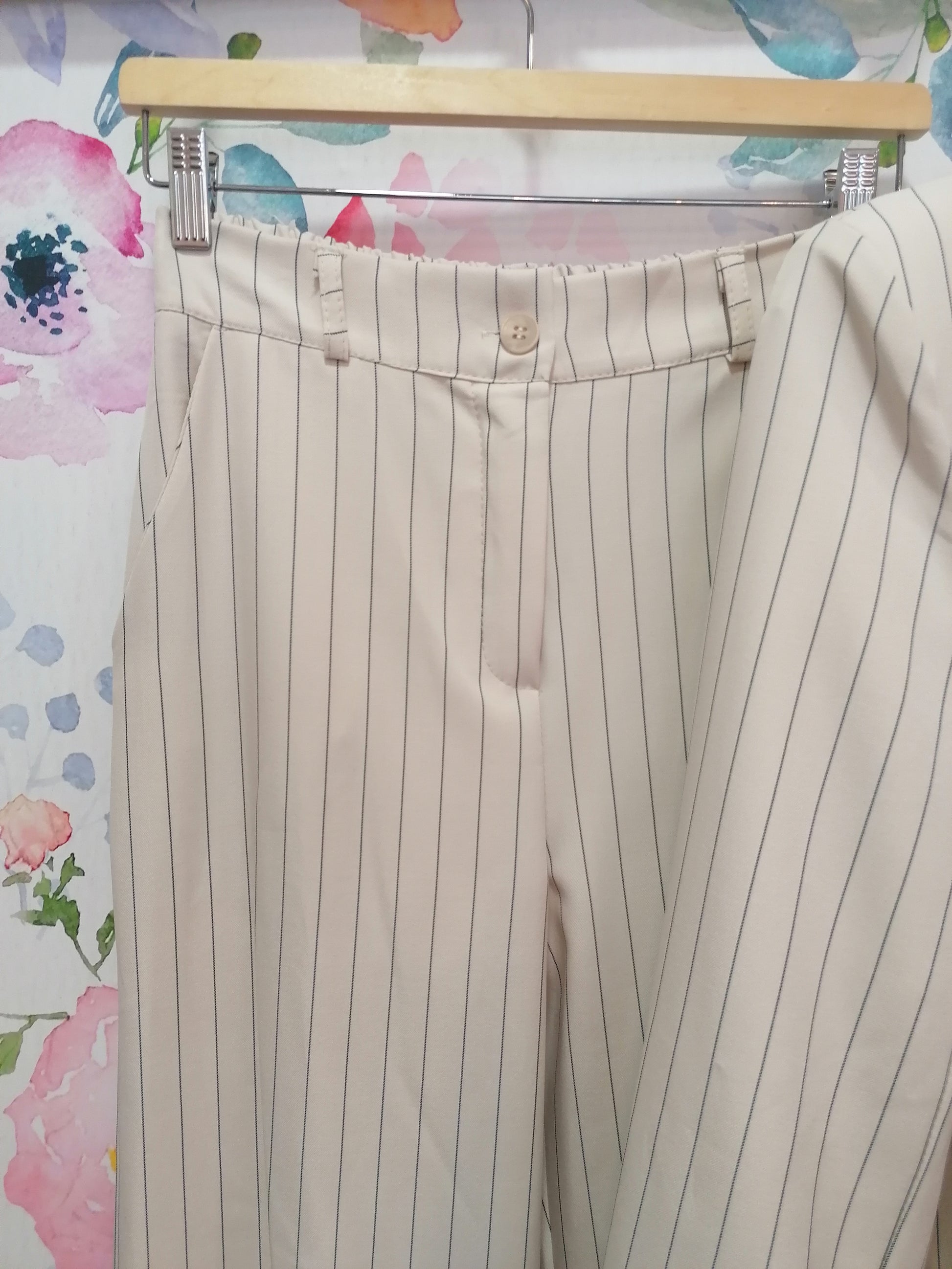 Completo elegante rigato blazer + pantalone palazzo burro