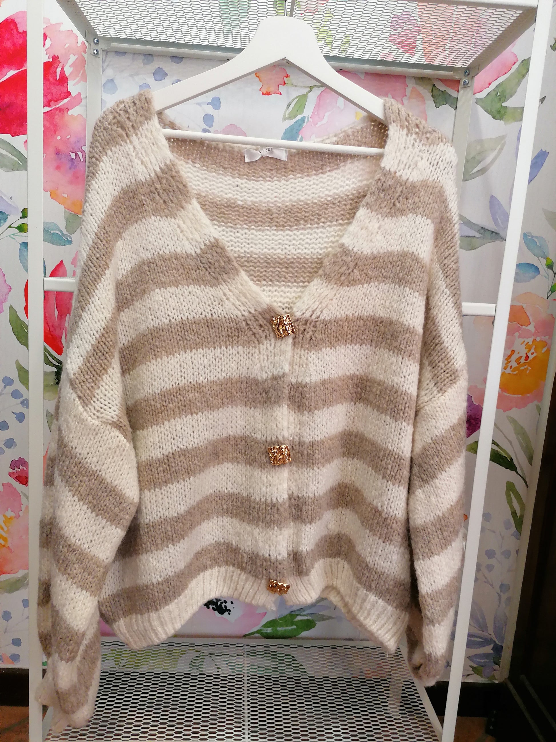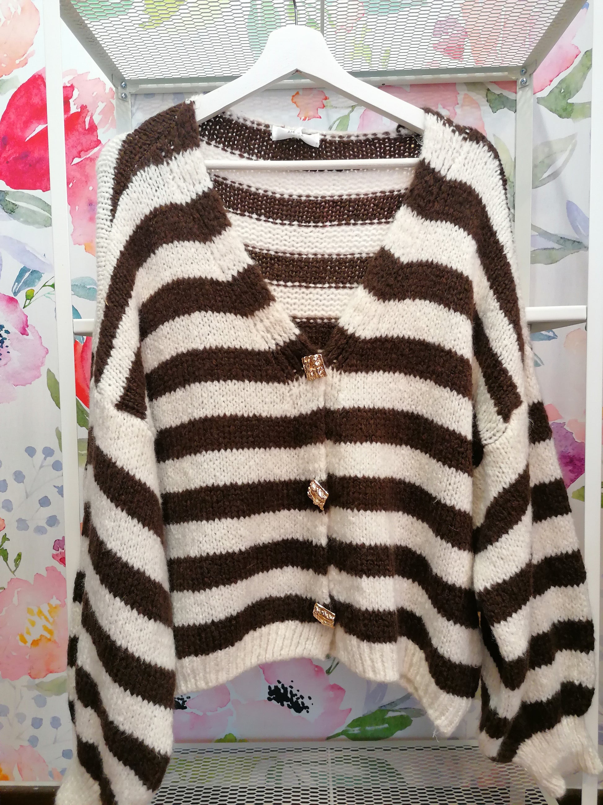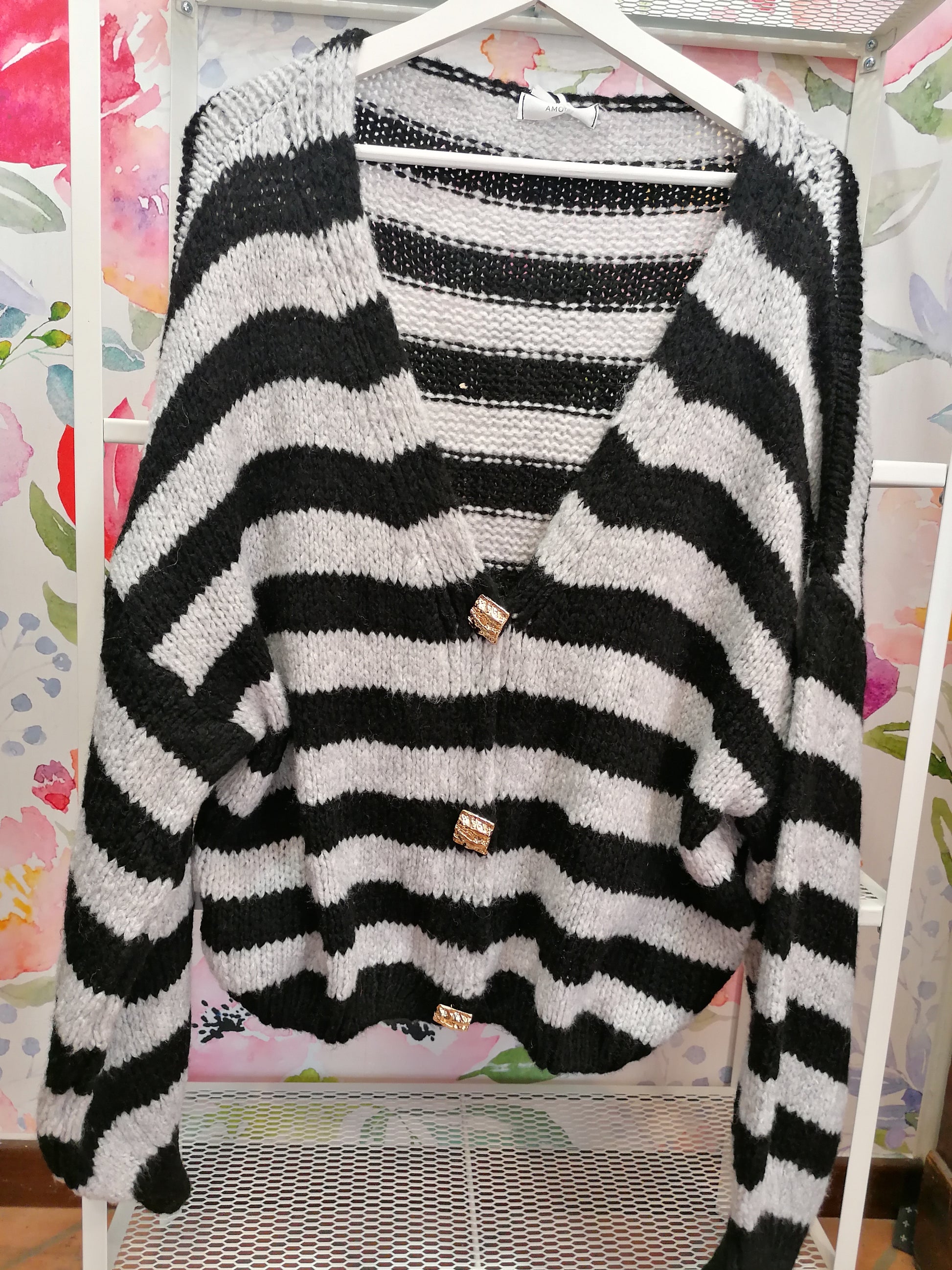 Cardigan a righe con spille dorate
