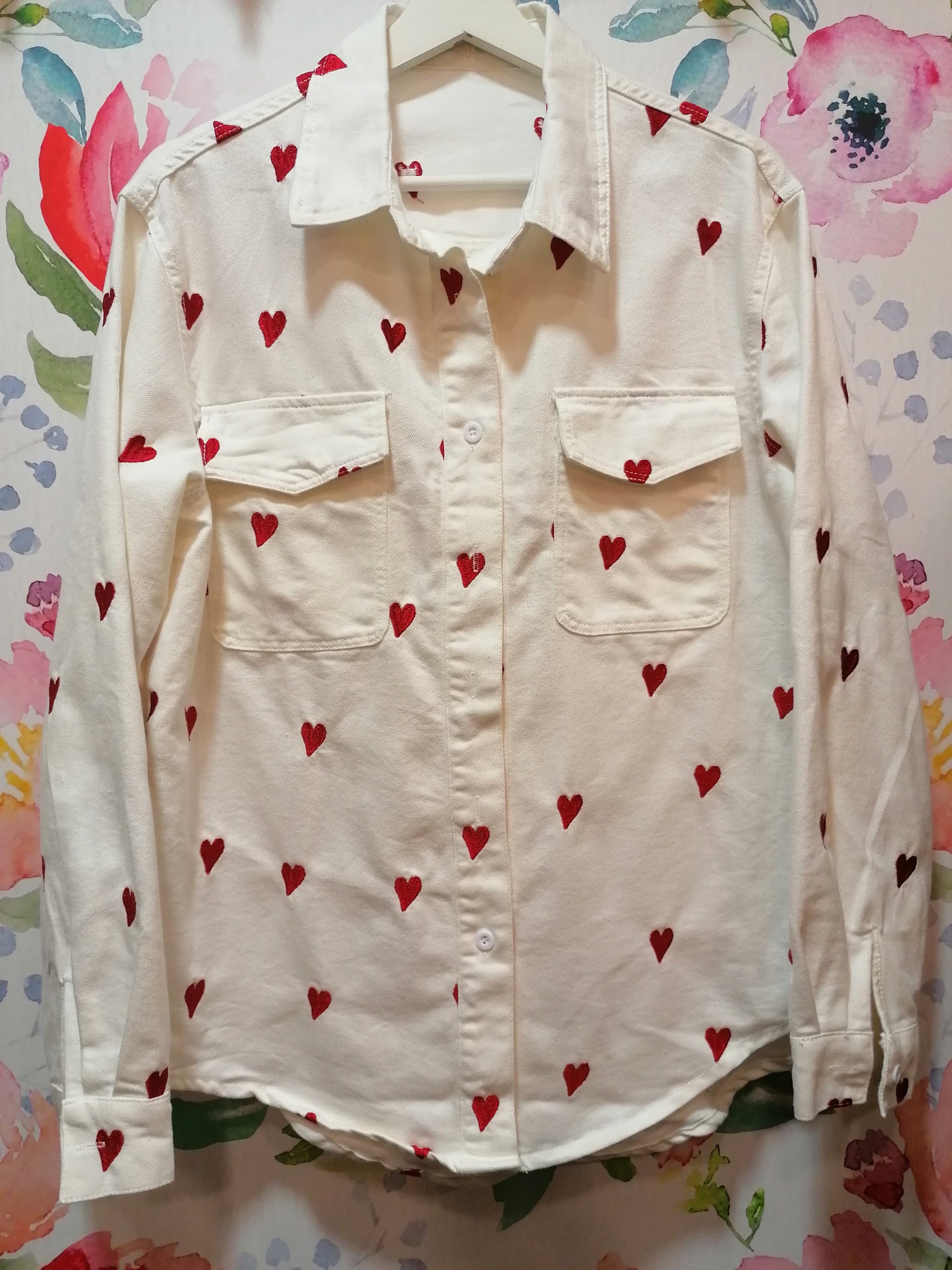 Scopri l'overshirt, una camicia strutturata in denim pesante, perfetta per aggiungere un tocco di stile al tuo outfit. I cuori ricamati rosa donano un pizzico di originalità, mentre il tessuto di qualità garantisce durata e comfort. Ideale per ogni occasione, è un must-have nel tuo guardaroba!